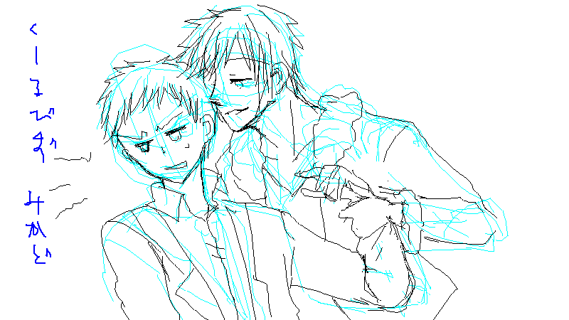 臨也さんの描き方を忘れ気味な線画wwwクールビズの意味をよく分かってないので微妙。うざそうな顔してる帝人が描きたかったんじゃなかったっけな…w